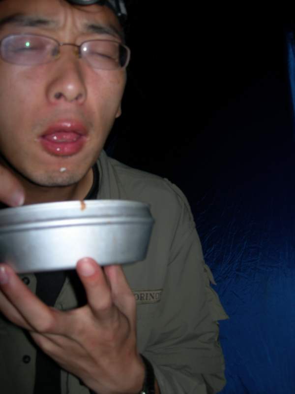 车开了,雨渐渐的大了,淡蓝兴高采烈的说雨大了我们就去腐败!可就在我们对腐败充满了向往的时候,雨渐渐的停了。车在一个集市上停了下来,在这里我们有了一个惊喜的发现,在我们的队伍中,竟然有一个七尺男儿害怕小小的没有爪子和牙齿甚至连蜇人的毛都没有的蚕,这让我们接下来的行程平添了很多快乐。在一个路口,我们下了车,合影,告别,自虐开始了。