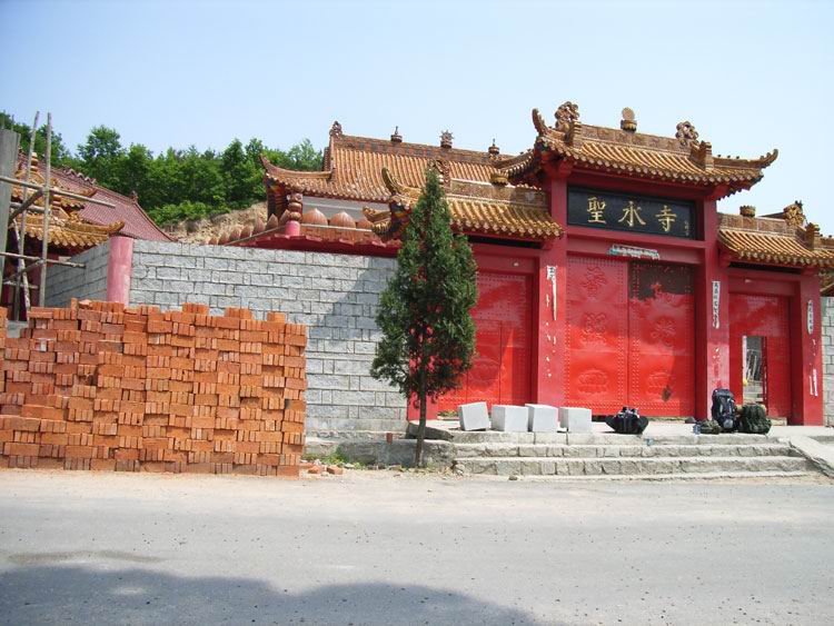 包车来到孙家窝棚下沟圣水寺下院与司机定好四点半准时来接。在向上院走正被太阳烤得不行的时候,走在最前边的我忽然感觉眼前一亮,哇~~迎面走来一美女,说她是美女可不是我在山里见不着人标准低啊!!就那质量在城里见着了回头率也绝对百分百,那就叫一个白啊!!上穿坎袖上衣,下穿及膝短裙。魂魂这时也来了精神,大叫变换队形,本来右侧通行的我们变到左侧通行,就在这时大美女做了个令人销魂的动作,轻轻地弯下腰向下拉了拉短裙(不在现场是无法理解那种销魂蚀骨感觉地!!)靠~~我们很匪吗?美好的时光总短暂的,她后边跟上要不是三个壮汉就完美了!与龙潭寺相比圣水寺开发的很好,寺庙建设一定的规模,香客也不不少,路上遇见那三男二女就是来圣水寺上香的。到了圣水寺上院刚刚坐下,就从斋堂里冲一胖女人很不客气:“你们干嘛地?旅游的吧,小点声啊,师夫们都睡觉呢。”这种地方多待无益,走人上山。在半山腰找了个有水背阴的地方开始造午饭了,饱暖思淫,吃饱喝足后三人自然是对路上那美女一通意淫××××(作者此处删去二百字)。要上山出发,魂魂提出他不上去在原地看包,给他留下对讲机后岩羊与我便上山了,去找传说中的水帘洞。万福山区的植被都非常的好,圣水寺后山上都松树林遮天蔽日的,上山的小路十分清晰四十分钟左右就上到了山顶了,我们又向下走了一点,路挺险的就在悬崖上,转了过去对讲机就没有信号了,拍了几张片子后就回去了。下山到圣水寺上院,遇见了不少香客,还有两村姑级美女,走在前边的我急忙用对讲告诉后边的岩羊和魂魂,二个飞下山来看了后总结:虽不及上山见的那个,但好歹也是个女的啊!!将就看吧!圣水寺的条件很好有机井把水抽上来并安了水龙头以方便洗漱,我们自然不能放过这机会,在我和魂魂洗脸的时候两村姑级美女走了过来站在我们身后注视着我和魂魂,顿时我心潮澎湃,哪还能有心意洗脸啊,该不会是遇见女贼了吧,这脸不要,起身回头盯着两村姑级美女看,两人走到水龙头前一个要洗腿,靠~~不会吧,难道在挑逗我和魂魂?这种级别的艳遇我需要吗,我得好好想想啊!自做多情中......呵呵,原来是腿破了啊,岩羊走了过来:“腿破了啊,呼噜你不是有消毒巾吗,快给拿点”,姜还是老的辣啊,就这么让他送了个空头人情。擦完走人了,岩羊说要刮胡子!?让我去给他借个镜子@#%%¥&我疯了......