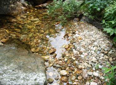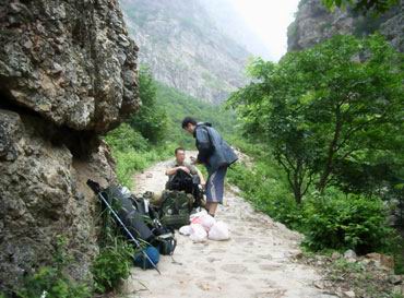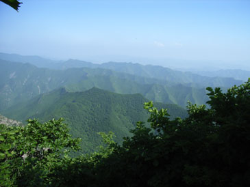 这时老师太与几位居士也安慰让我不要过意不去,没有事。但这事现在想起来我还是感觉特过意不去,这里友情提示各们看官,以后可要小心不要像我这样冒失啊!!过了一会儿那位问我话的居士出来叫岩羊,说师夫要见见他。看来岩羊的佛缘比我深啊,我是硬闯他是被招见的,比我层次高啊。岩羊进去了一会儿出来后,慧圆师夫也给他写了几句话让居士带出来给他,写的什么当时看过,现在忘了。后与师太谈起闭观的事,师太说与她同住的居士小刘去年闭谷不吃不喝了四五十天(具体多少记不清了)呢,真是太神了!!收拾完东西我们决定再上到垭口看看能否穿到水库那边去,老师太说她走过那路,送我们上山为我们指路。延着昨晚上山的路再次上山,老师太体力挺好的,一路上没有休息。到达垭口时遇见了爷三个,经交谈得知三人是从水库那边的村子过来挖人参的,水库的船坏了,他们是划着用汽车内胎自制的小船过来的,我们是不可能联系到水库的船到水库那边的村子的,从山上走太远了得走一天吧。好吧,只能原路返回原计划从水库穿过去到步云山是不可能了,下山后时间够用的话就去孙家窝棚踩线去。我又在垭口拍了几张水库的片子,就开始吃饭了。下山第六次到龙潭寺,这次没做停留和师夫打了招呼后就急忙下山去了,好在昨天上山是走水路上来的,今天下山走的旱路和昨天没有多少重复的,但一路上的风景实在没法和水路相比了,一路也就没拍片。两天来没有怎么被太阳晒着的我们,猛的被太阳这么一晒都受不了,表现最强烈的就是我,最大的愿望就想喝口冰的百事可乐,一路嘟嘟囔囔:下山第一件事就是买瓶可乐喝,放~魂这时也开始有意挑逗我,给我讲:拿起一瓶冰得的瓶上粘满着水珠的百事可乐喝一口,可乐咕噜滑过喉咙......想想都要疯了,一瓶冰百事可乐就是我全部的愿望......就这样在半疯中我们下了山,看到了山门我健步如飞地奔了过去,还不知残酷的事实在等着我,除了山区小厂出的那种劣质饮料外没有其他任何饮料......还好我比较抗造,没有被残这酷的事实击倒。为了我的愿望,为了那口冰的百事可乐我们继续前行。进村子找到了唯一的小卖店再次令我失望。